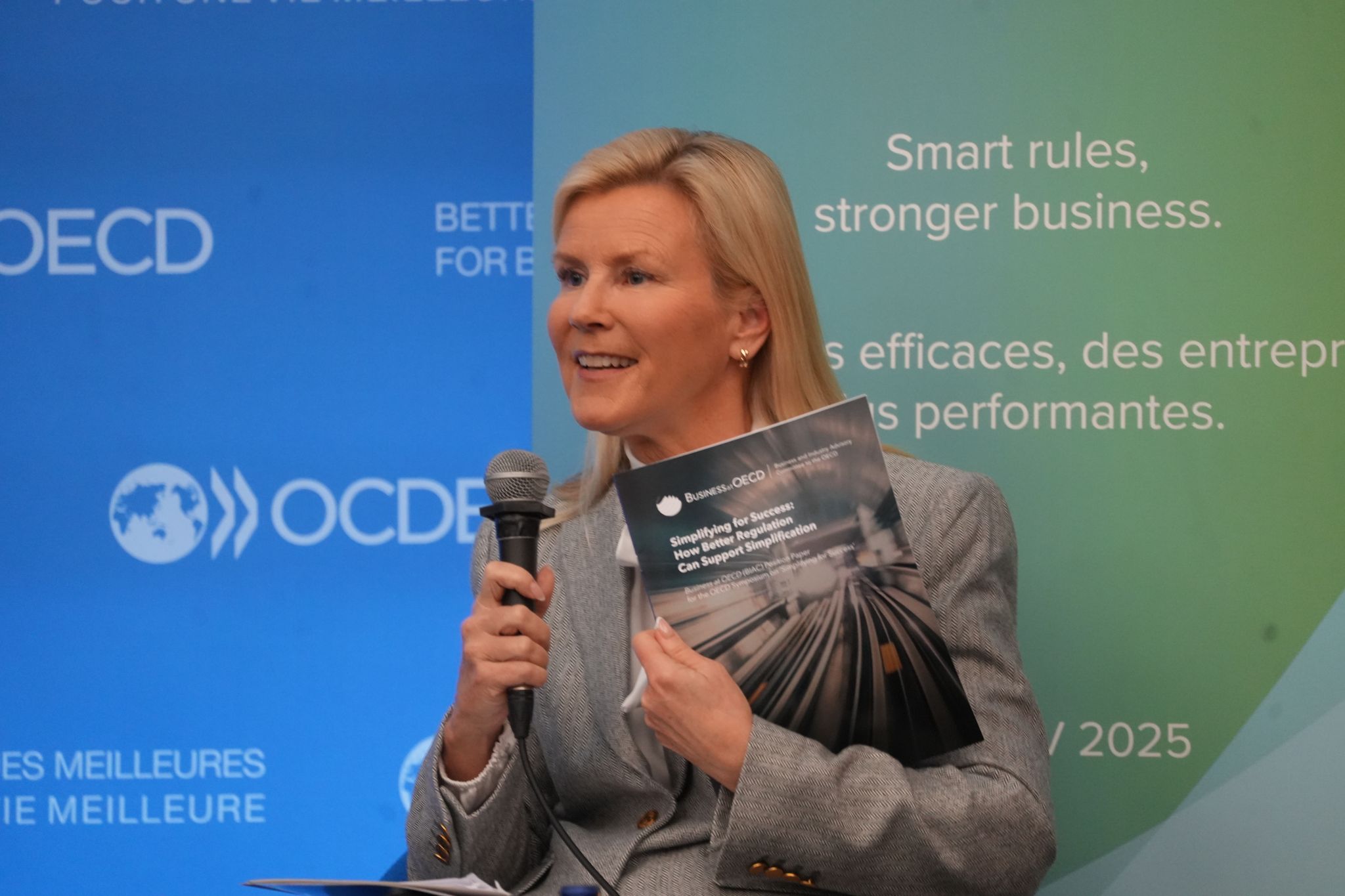 Business at OECD also hosted a working lunch during the Symposium, bringing together a diverse range of representatives from our business network, such as Bayer, Sanofi, Diageo, BAT, AB InBev, Holcim, CECIMO, WindEurope, the Confederation of Swedish Enterprise, Ibec, the U.S. Council for International Business, VNO-NCW, BusinessEurope and others. During the lunch, participants discussed the regulatory and administrative requirements which create the most significant burdens for business, as well as key learnings from simplification efforts which have helped reduce those burdens.